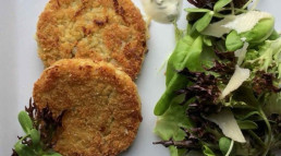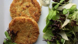 - Form farsen til kaker og vend dem i lavprotein-brødsmuler. Stek i olje i en panne til de er gylne og sprø.