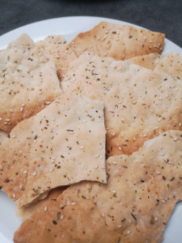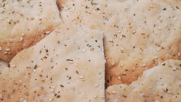 - Pensle med mandelmelk og dryss over havsalt, timian, oregano og sesamfrø.